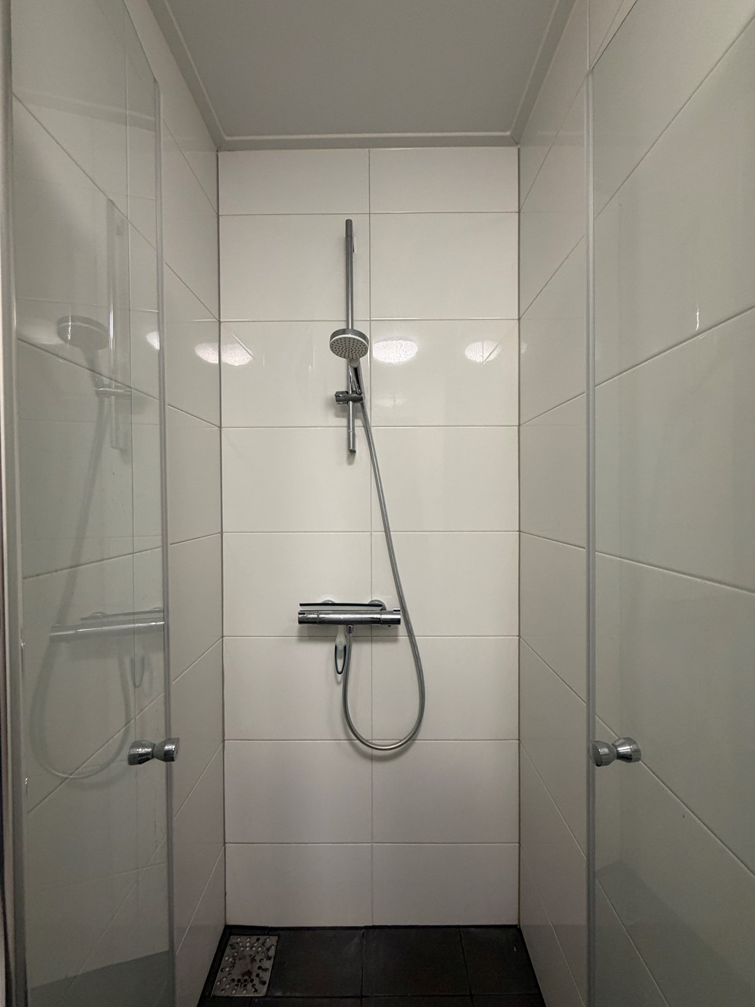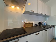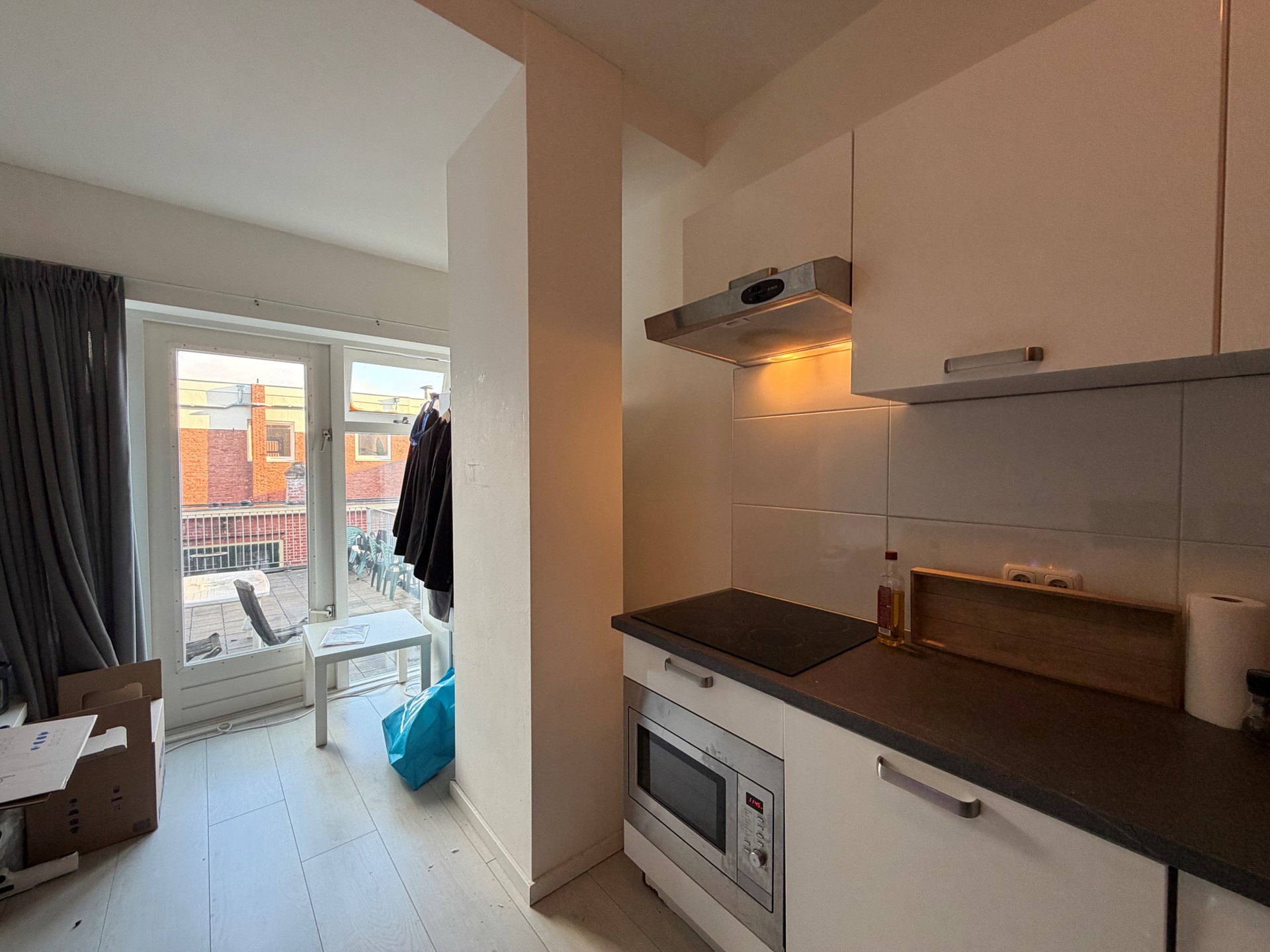 Bij binnenkomst betreed je de woon-/slaapkamer met een open keuken. De keuken is volledig uitgerust met een inductiekookplaat, koelkast, afzuigkap en een combinatie oven-/magnetron. De badkamer is voorzien van een toilet, douche en wastafel.