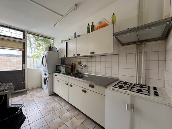 Kamer 3 is gelegen op de eerste verdieping aan de voorzijde van het pand en heeft een oppervlakte van circa 14,19 m². De badkamer bevindt zich op dezelfde verdieping en wordt gedeeld met vijf medebewoners. De gedeelde keuken is ruim en voorzien van alle noodzakelijke gemakken. Daarnaast is er een achtertuin en een praktische berging aanwezig.