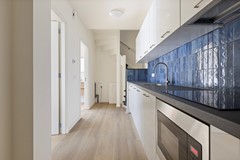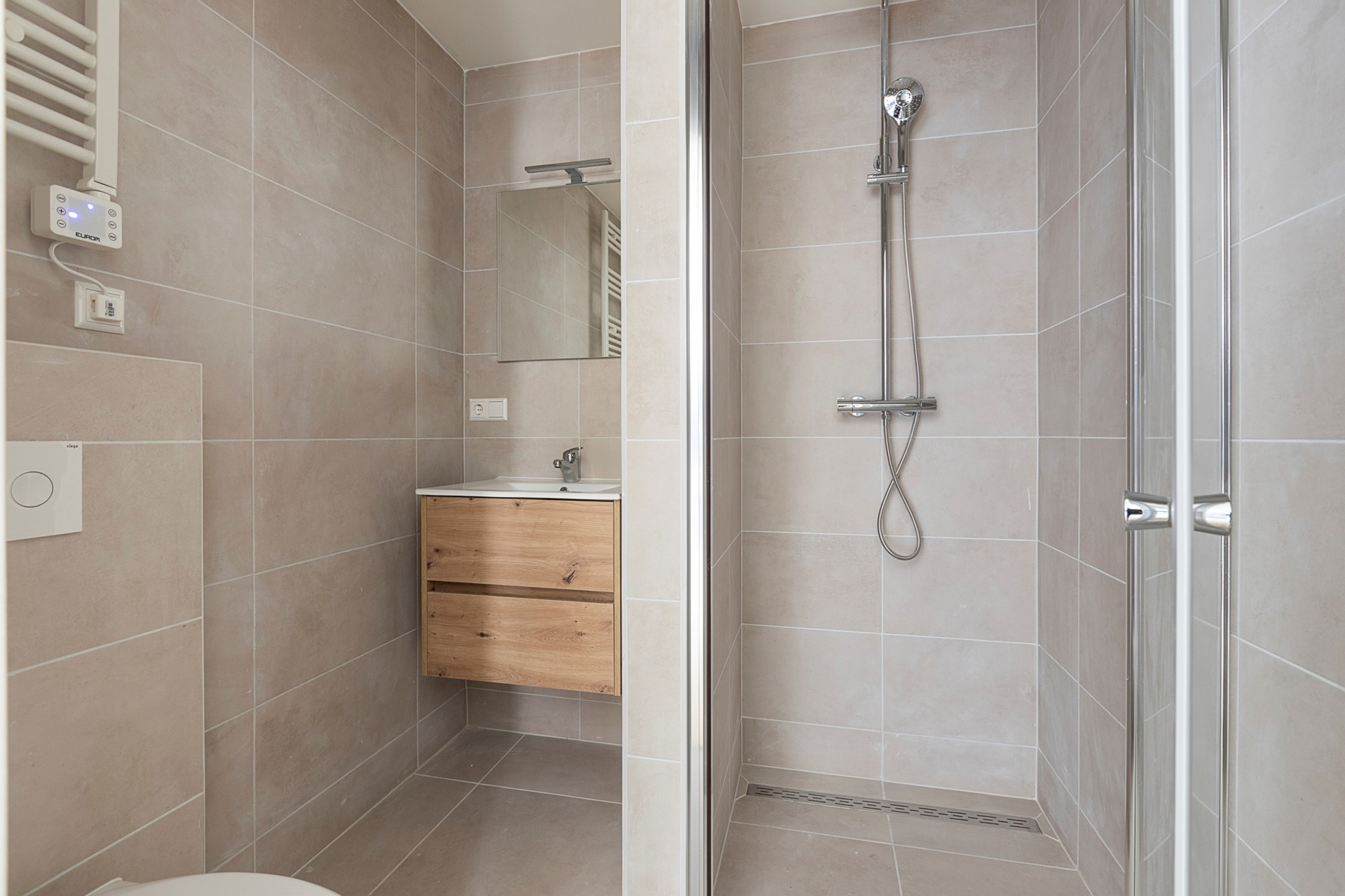 De kamer heeft een gebruiksoppervlakte van circa 16 m². De woning is volledig gerenoveerd en beschikt over een moderne keuken met diverse inbouwapparaten, zoals een koelkast, inductiekookplaat, afzuigkap, vaatwasser en combi-oven/magnetron. Ook de badkamer is keurig afgewerkt en uitgerust met een douche, toilet en een wastafel met meubel.
