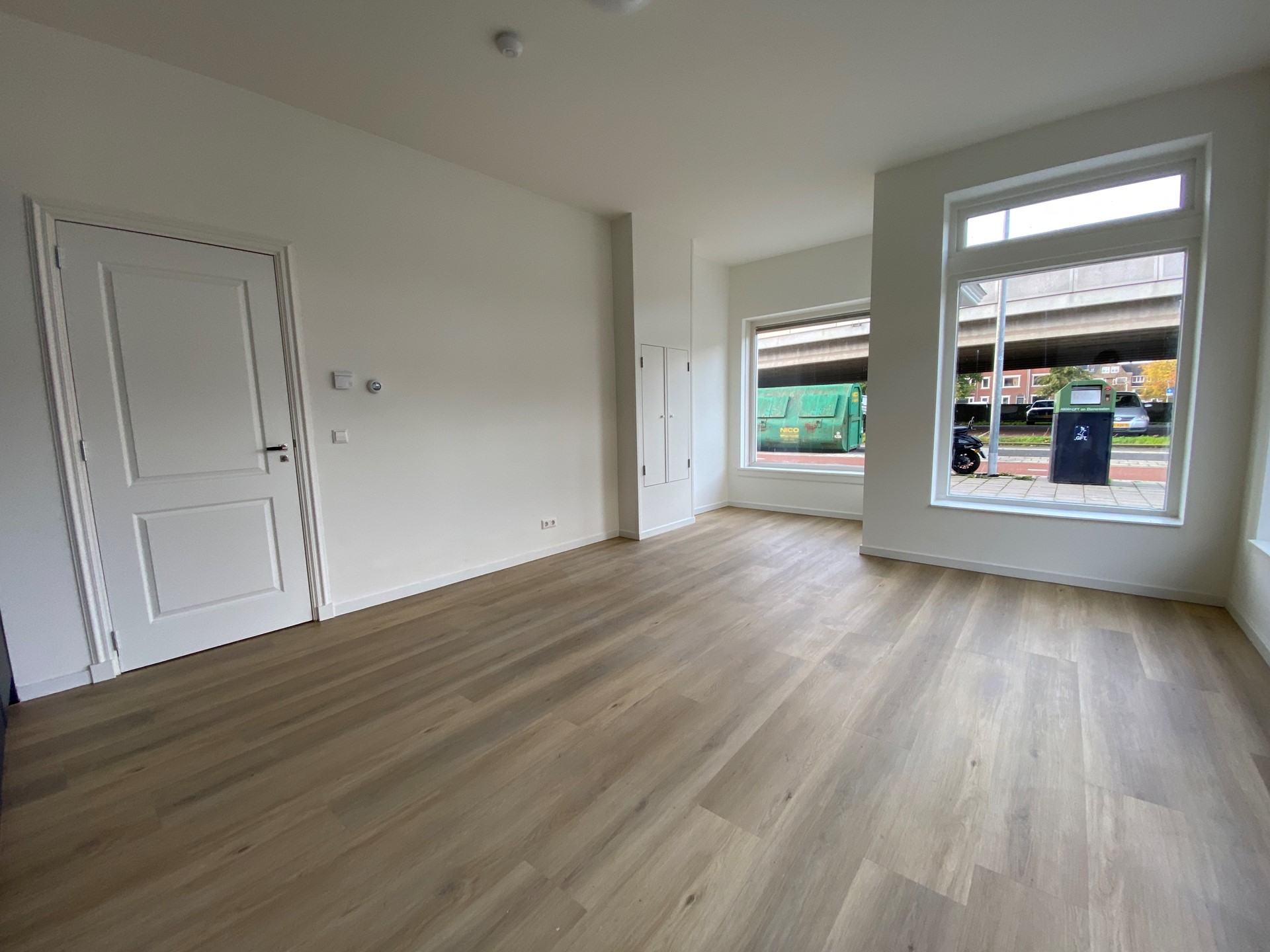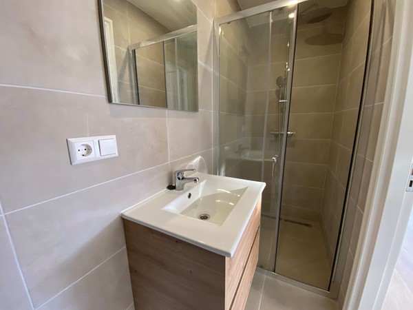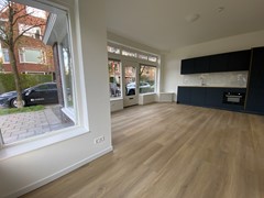 Via de entree heeft u toegang tot de studio. De ruime woon en slaapkamer met open keuken geniet van veel natuurlijk licht dankzij de grote ramen aan de voorzijde. De keuken is volledig uitgerust met diverse inbouwapparatuur, waaronder een inductiekookplaat, koelkast, vaatwasser, oven en magnetron. De badkamer is netjes afgewerkt en van alle gemakken voorzien.