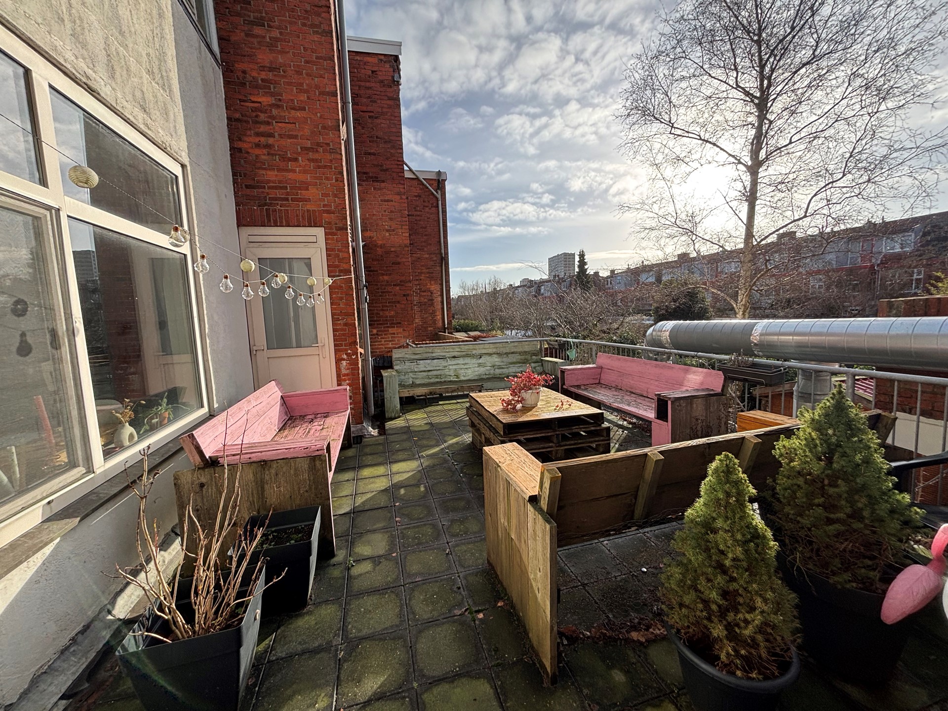 Bij binnenkomst kom je in de gezamenlijke hal, die toegang geeft tot alle kamers en de gemeenschappelijke ruimtes. De woning wordt gedeeld met vier vrouwelijke medebewoners. De kamer heeft een oppervlakte van circa 14 m². De keuken, badkamer en het toilet worden gedeeld. Daarnaast heeft het pand een gezamenlijk dakterras.