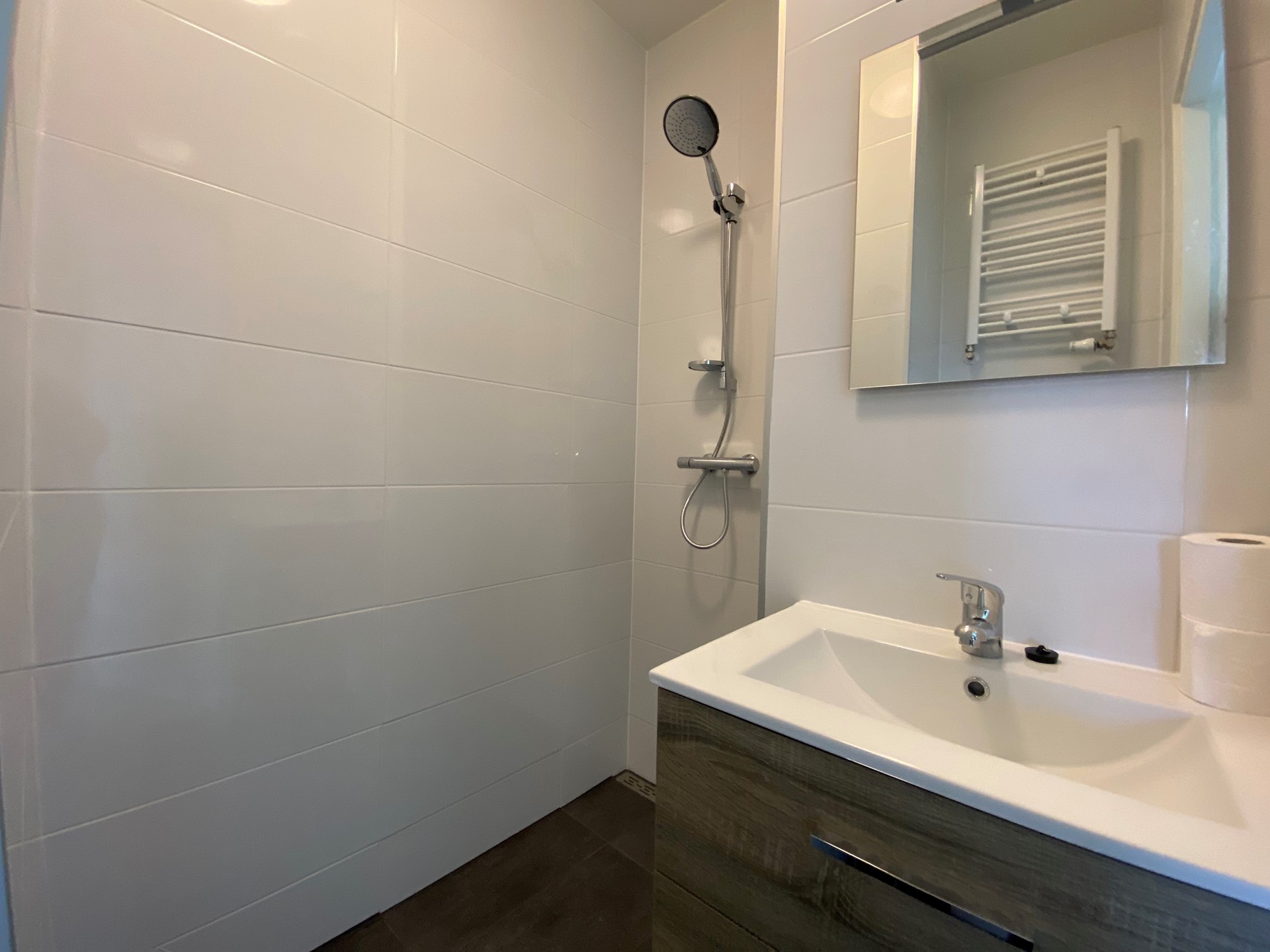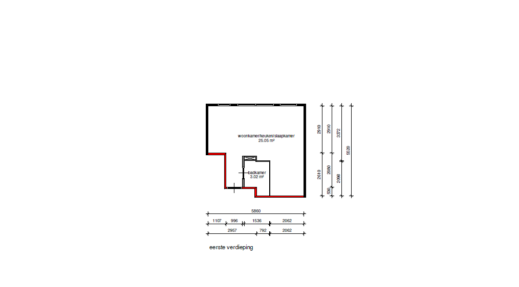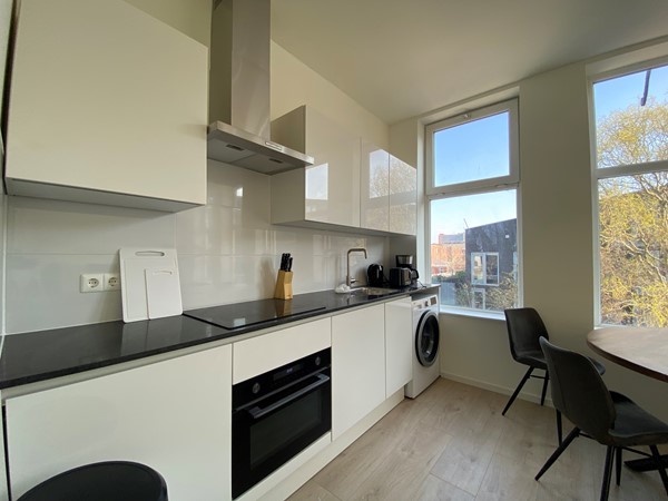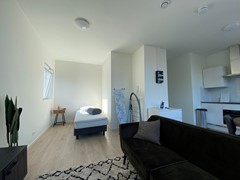 De studio bevindt zich op de eerste verdieping van de woning en is 28,39m² groot. De woon-/slaapkamer beschikt over een open keuken, die voorzien is van een vaatwasser, combi oven/magnetron, inductiekookplaat, afzuigkap en koelkast. In de badkamer is een douche, toilet en wastafel aanwezig.