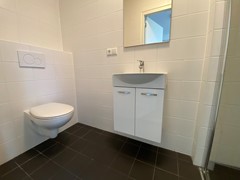 De studio heeft een woonoppervlak van ongeveer 37m². Er is een lichte woon/slaapkamer met open keuken en een badkamer met douche, wastafel en toilet. De keuken is voorzien van alle gemakken, zoals een combi-oven/magnetron, inductiekookplaat en koelkast. Daarnaast is er een fietsenberging, waar je je fiets veilig kunt neerzetten. De wasmachine wordt gedeeld met de buren.