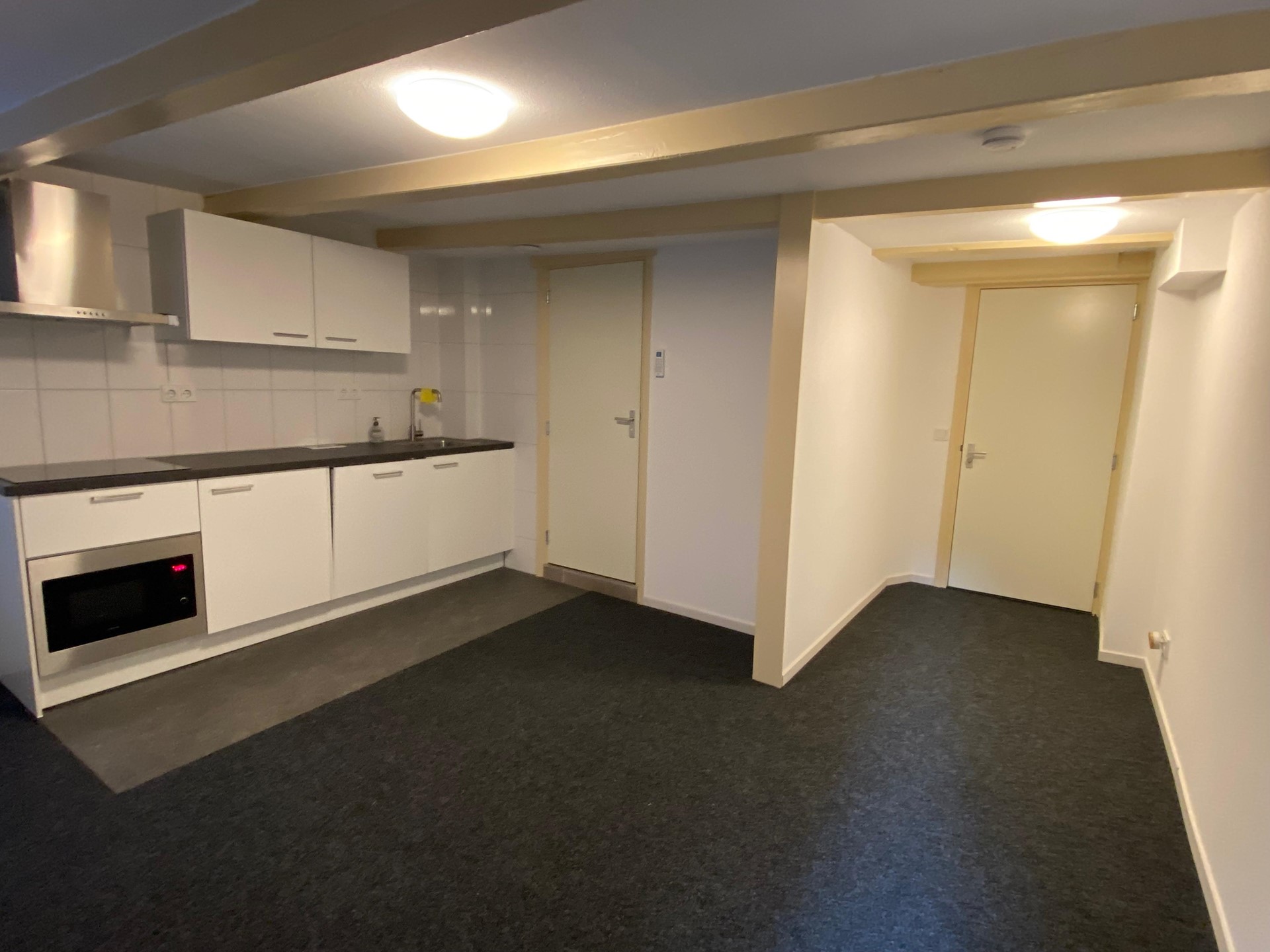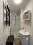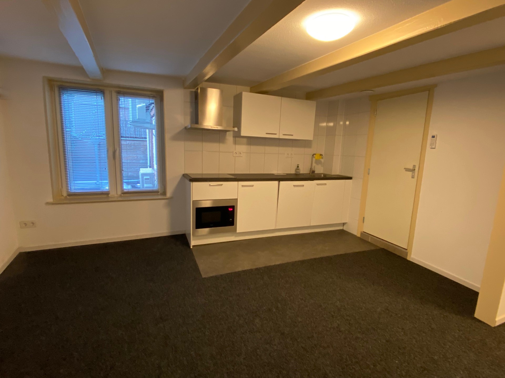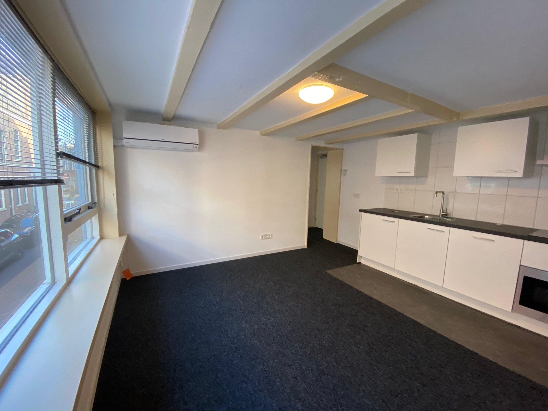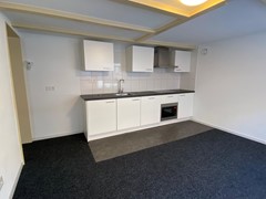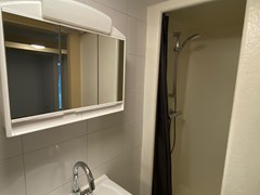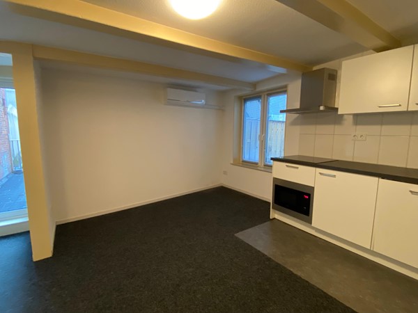 Raamstraat 8-C (Photos 8–12) is located on the first floor and has a living area of approximately 30 m². The living/sleeping area has an open kitchen equipped with a refrigerator, induction hob, combi oven/microwave, dishwasher and extractor hood. The bathroom is equipped with a shower, toilet and sink. In addition, the studio has a separate bedroom.