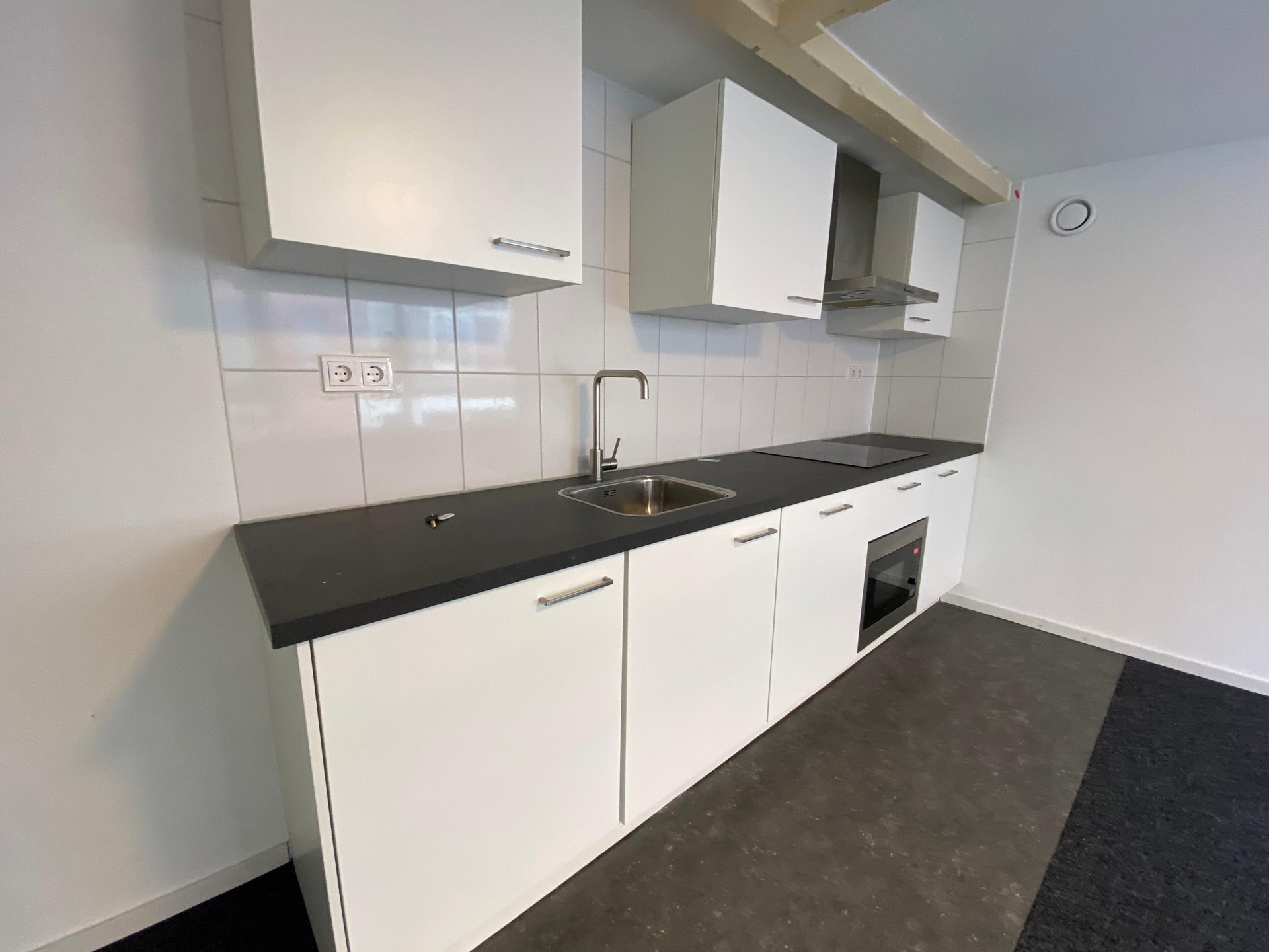 Raamstraat 8-A (Photos 17–20) is located on the first floor and has a living area of approximately 25 m². The living/sleeping area has an open kitchen equipped with a refrigerator, induction hob, combi oven/microwave, dishwasher and extractor hood. The bathroom is equipped with a shower, toilet and sink.