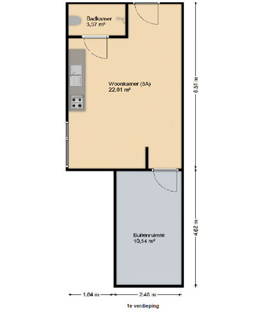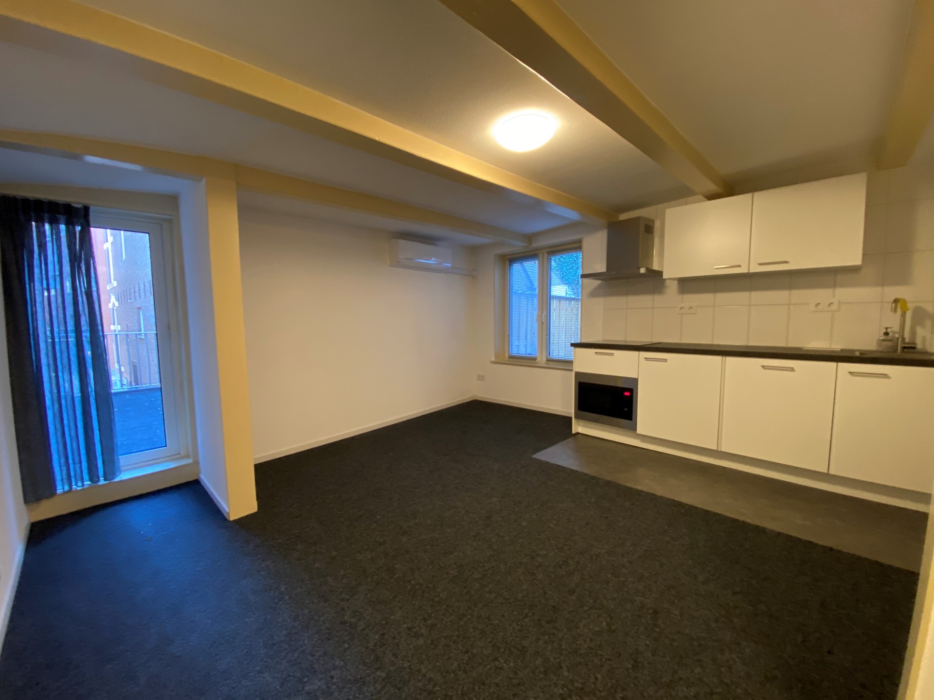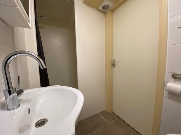 Raamstraat 8-C (Photos 8–12) is located on the first floor and has a living area of approximately 30 m². The living/sleeping area has an open kitchen equipped with a refrigerator, induction hob, combi oven/microwave, dishwasher and extractor hood. The bathroom is equipped with a shower, toilet and sink. In addition, the studio has a separate bedroom.