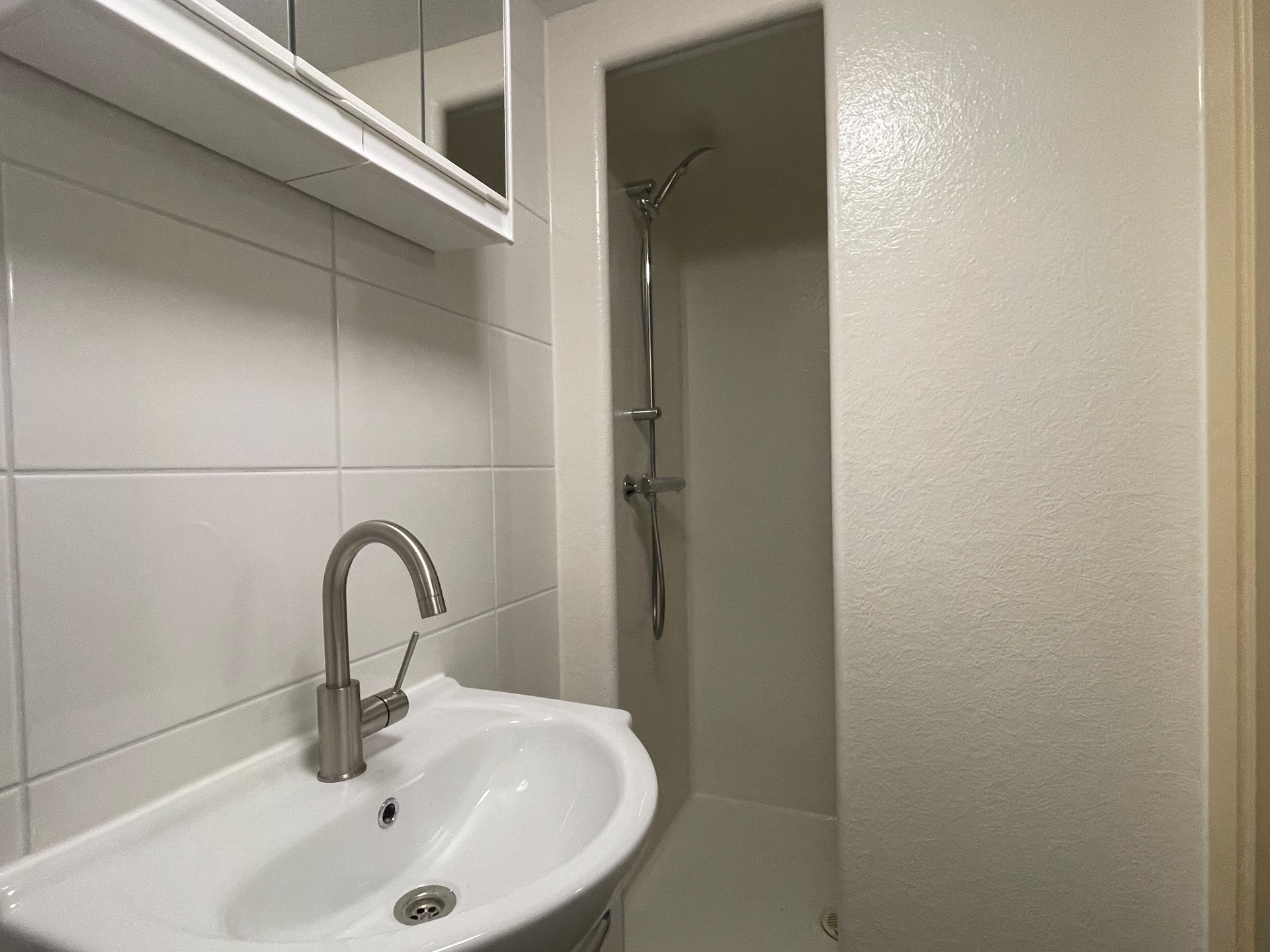 Raamstraat 8-E ( foto 2 t/m 7 ) bevindt zich op de tweede verdieping en heeft een woonoppervlak van circa 25 m². De woon-/slaapkamer beschikt over een open keuken, welke is voorzien van een koelkast, inductiekookplaat, combi-oven/magnetron, vaatwasser en afzuigkap. De badkamer is voorzien van een douche, toilet en wasbak.