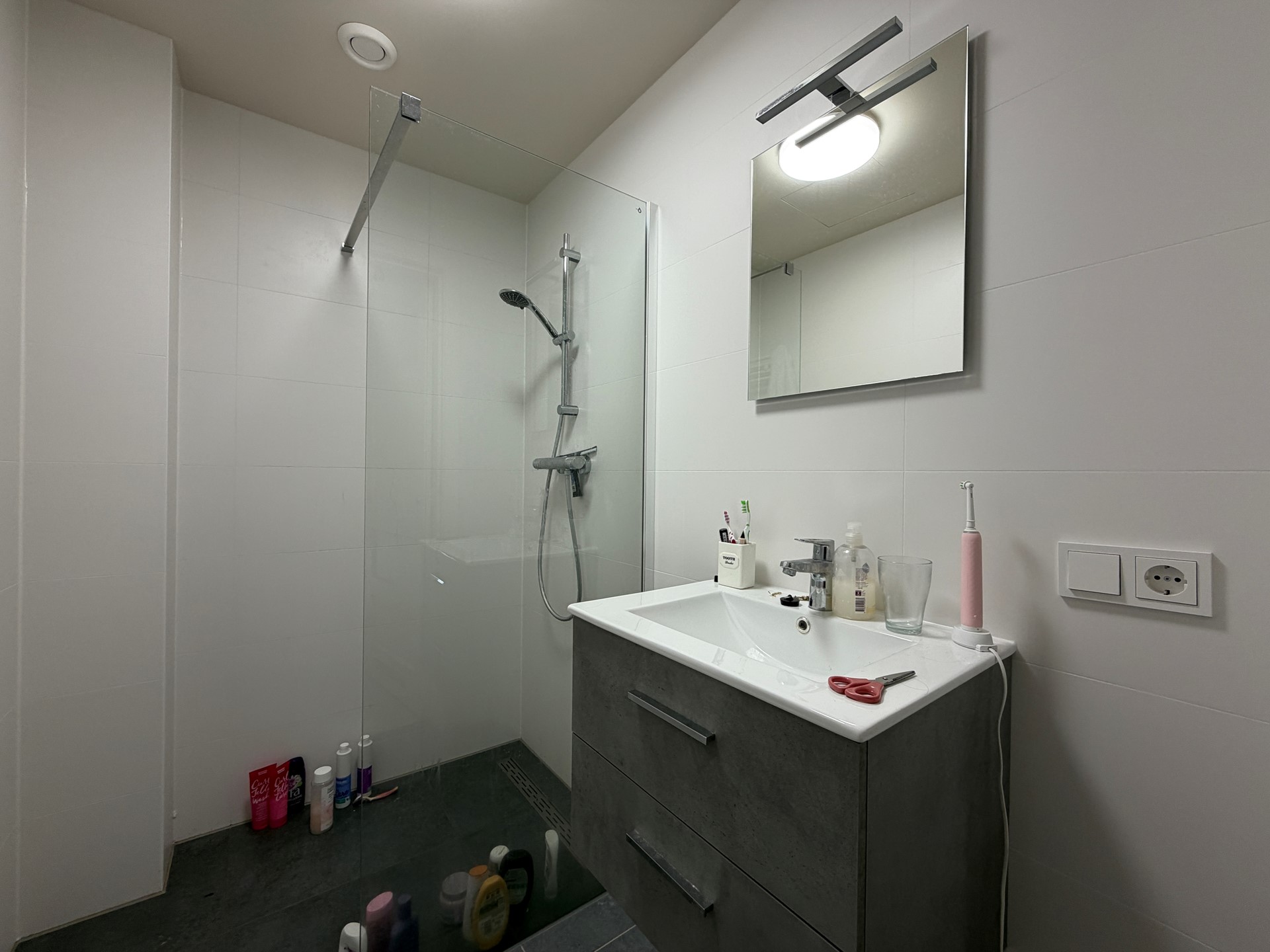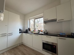 Kamer 3 heeft een gebruiksoppervlakte van 17,6m2. De keuken is volledig uitgerust met de nodige voorzieningen. De badkamer bevindt zich op de eerste verdieping en is voorzien van een douche en een wastafel met bijbehorend kastje. Tot slot beschikt de woning over een gemeenschappelijke balkon.