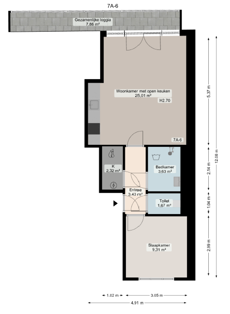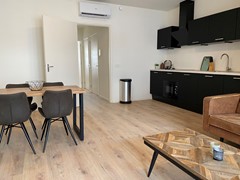 Bij binnenkomst van het appartement kom je terecht in de hal. Vanaf hier is de woonkamer, badkamer, apart toilet en de slaapkamer te bereiken. Ook is er nog een kleine bergruimte gelegen in het appartement. De ruime en lichte woonkamer met open keuken is voorzien van alle luxe inbouwapparatuur en heeft veel lichtinval van buitenaf. Vanaf hier is er een prachtig uitzicht op de binnenstad van Groningen.