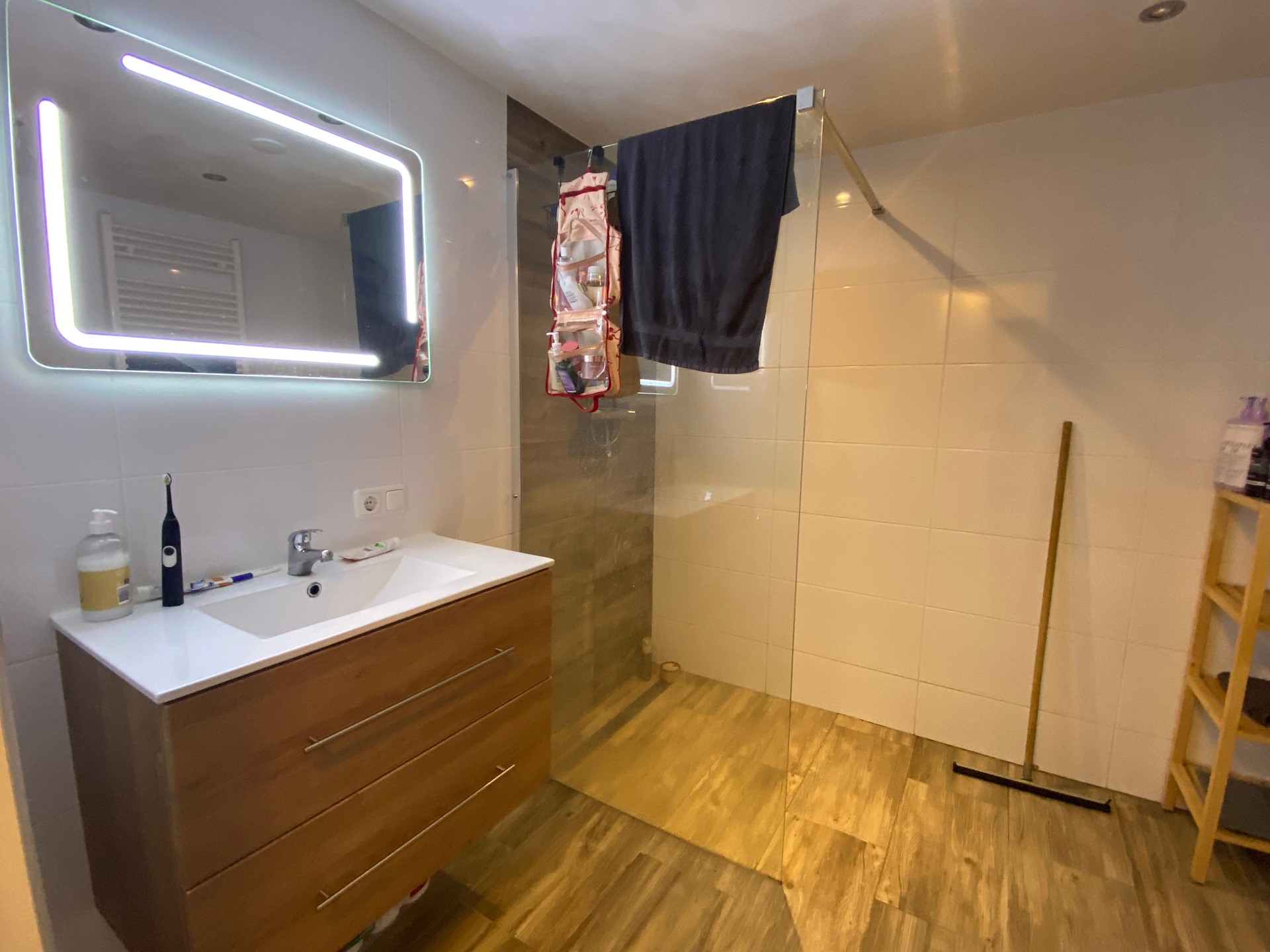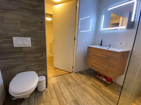 Via de entree kom je in de hal met toegang tot de eerste en tweede verdieping. Op deze verdiepingen bevinden zich een ruime woonkamer van circa 50 m² met open keuken en directe toegang tot het dakterras. De keuken is volledig uitgerust met onder andere een koelkast, vaatwasser, inductiekookplaat en een combinatie oven/magnetron. Daarnaast beschikt het appartement over vier ruime slaapkamers, variërend van circa 12 tot 15 m², en een badkamer. De totale woonoppervlakte bedraagt ongeveer 110 m².