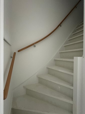 Via de entree betreed je het appartement van 90m2 op de eerste verdieping en neem je direct de trap omhoog naar de woonkamer met open keuken. De keuken is modern uitgevoerd en voorzien van een inductiekookplaat, koelkast, vaatwasser en een combinatie oven-magnetron. De badkamer beschikt over een douche en wastafelmeubel. Het appartement heeft twee ruime slaapkamers en een frans balkon.