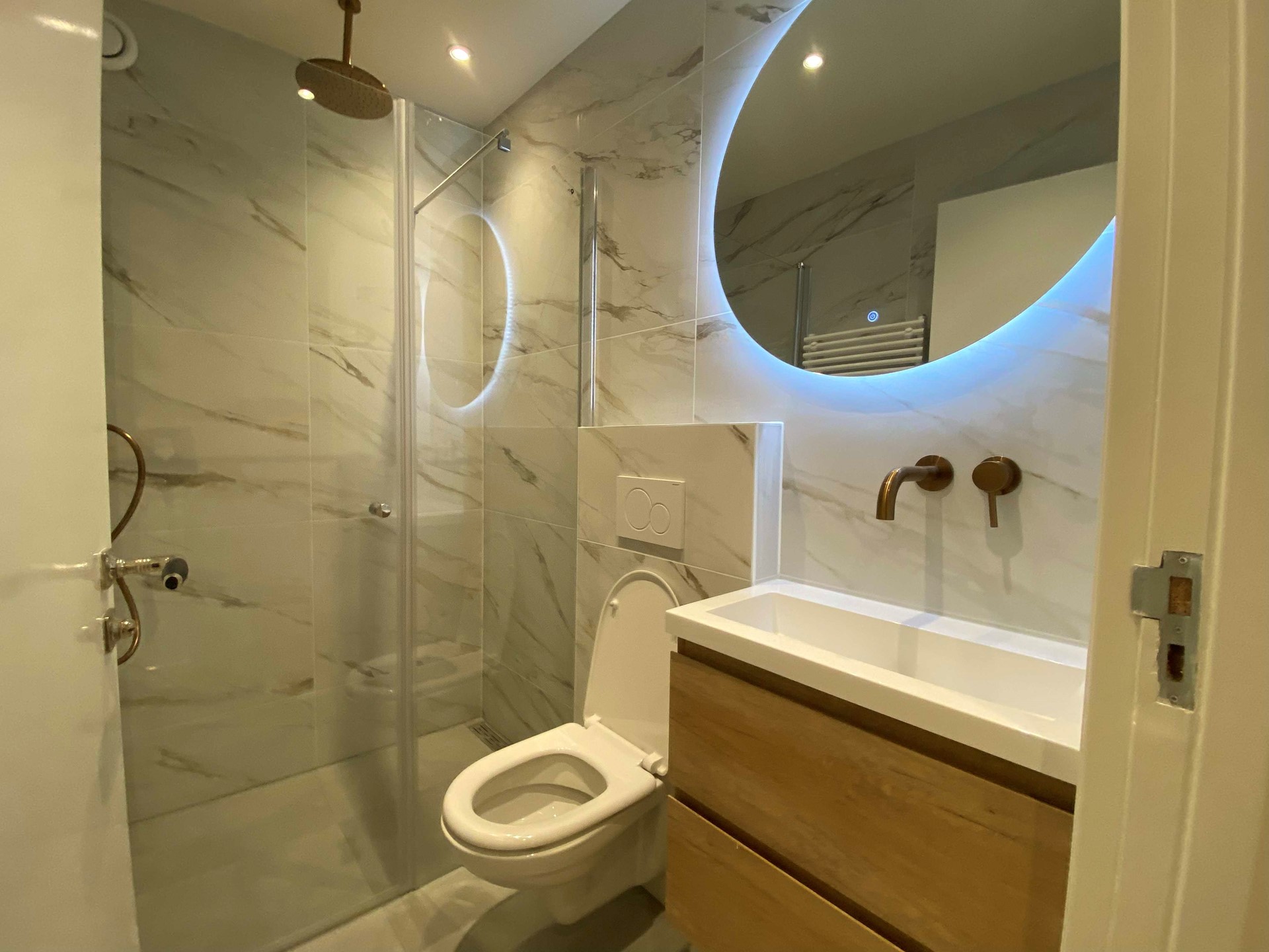 Het appartement heeft twee slaapkamers en beschikt over een A+++ label. Bij binnenkomst kom je direct in de lichte woonkamer met open keuken, die is voorzien van een inductiekookplaat, vaatwasser, koelkast en combi-oven. De badkamer beschikt over een douche, wastafel en toilet. Er is ook nog een apart toilet aanwezig.
