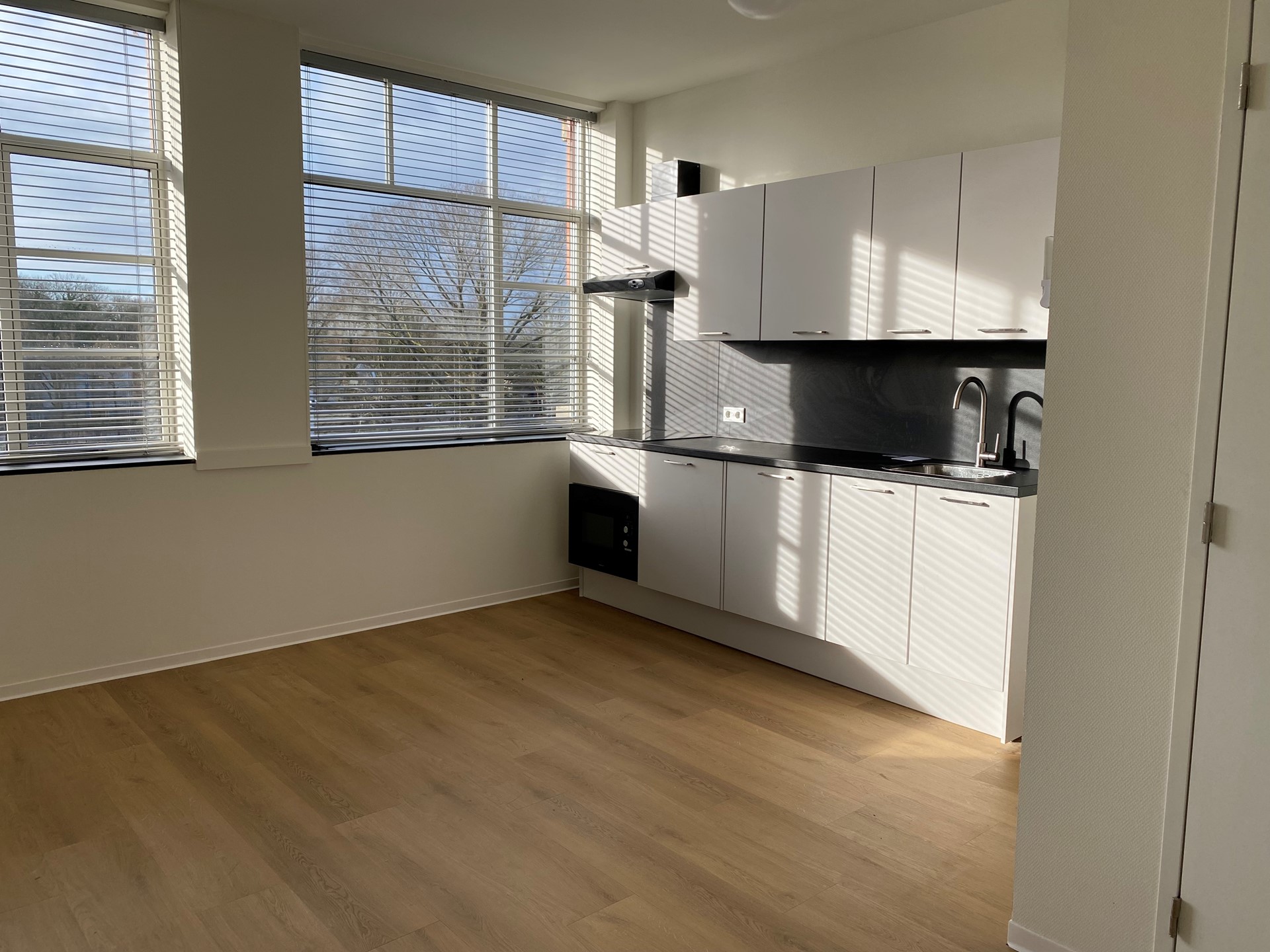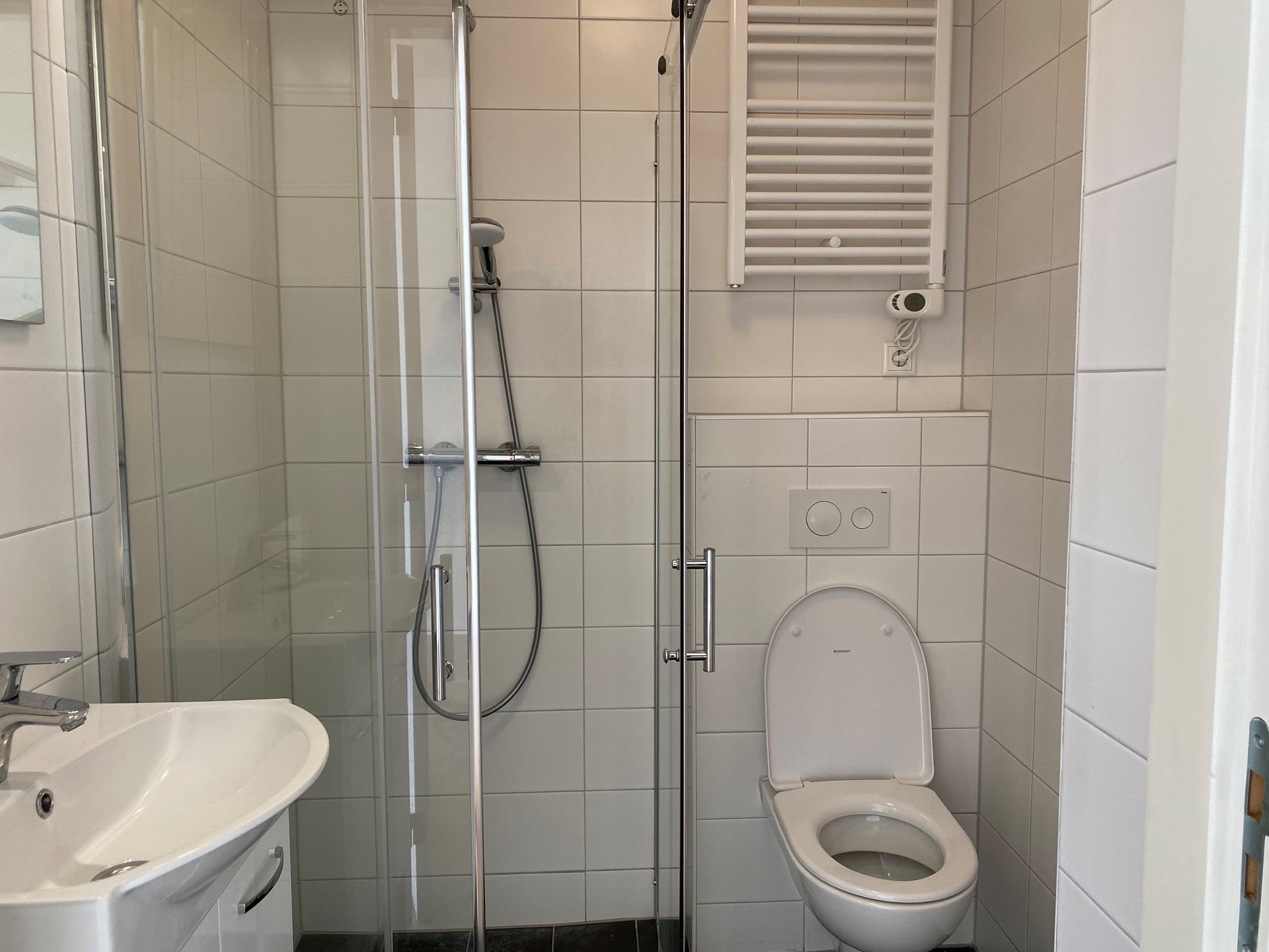 Je komt binnen in een gedeeld portiek. De studio bevindt zich op de tweede verdieping van het pand en heeft een totale woonoppervlakte van circa 26 m². Bij binnenkomst kom je in de woon-/slaapkamer met open keuken. De keuken is voorzien van een afzuigkap, inductiekookplaat, combi-oven, koelkast en vaatwasser. De badkamer beschikt over een douche, wastafel en toilet.