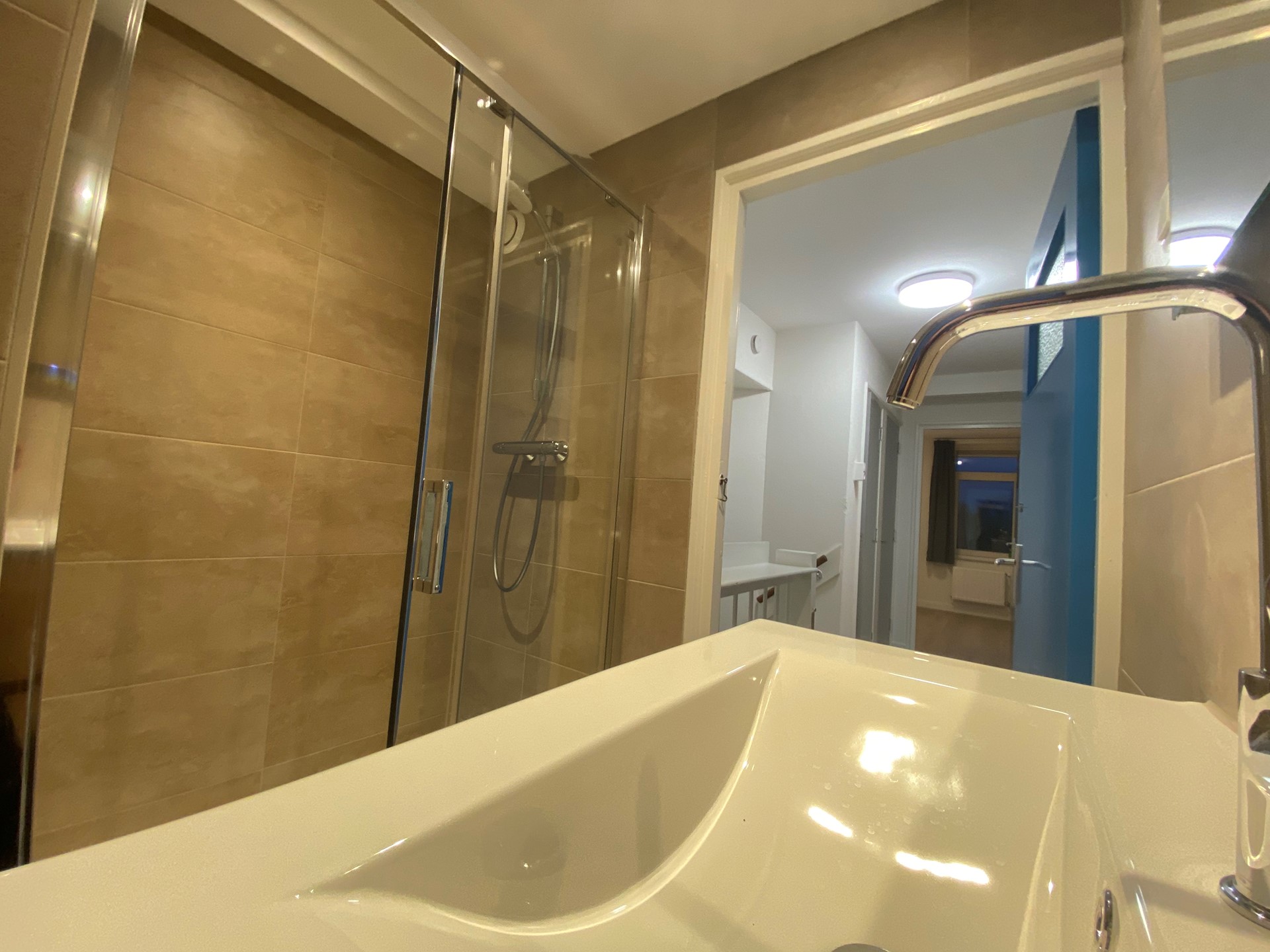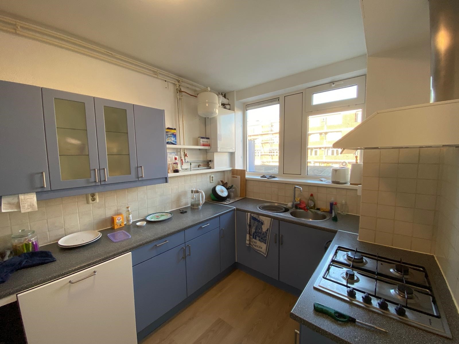 De woning bevindt zich op de eerste verdieping van het pand. Je komt binnen in de gedeelde hal, die toegang geeft tot de gemeenschappelijke keuken, welke is voorzien van een afzuigkap, gaskookplaat, oven en vaatwasser, evenals tot de woonkamer van circa 22 m² en het toilet. Op de tweede verdieping liggen de slaapkamers. kamer 3 circa 6 m² . Tot slot is er een badkamer van ongeveer 3 m², uitgerust met een douche en een wastafel.