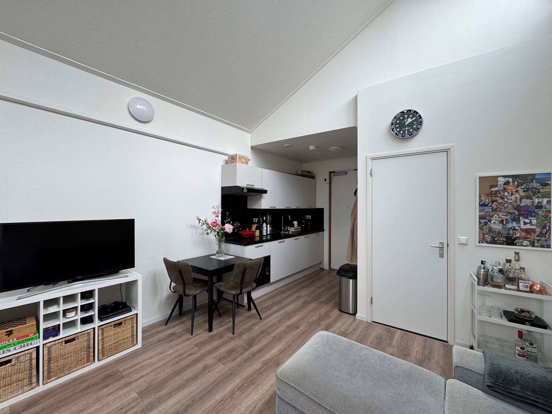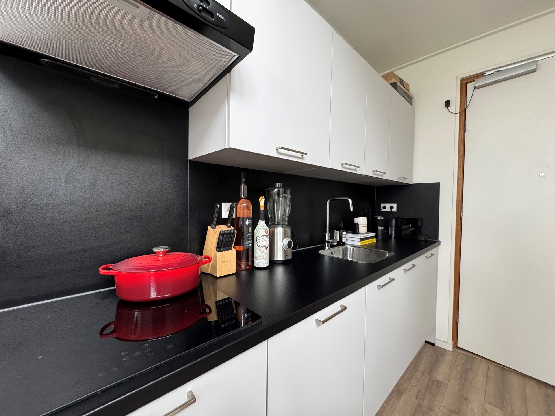 Je komt binnen in een gedeelde hal die toegang geeft tot de gezamenlijke fietsenstalling en de overige studio’s. De studio bevindt zich op de eerste verdieping van het pand en heeft een totale woonoppervlakte van circa 30 m². Bij binnenkomst kom je in de woon-/slaapkamer met open keuken. De keuken is voorzien van een afzuigkap, inductiekookplaat, combi-oven, koelkast en vaatwasser. De badkamer beschikt over een douche, wastafel en toilet. Daarnaast is er een gedeelde wasruimte aanwezig, die je deelt met de andere adressen in het pand.
