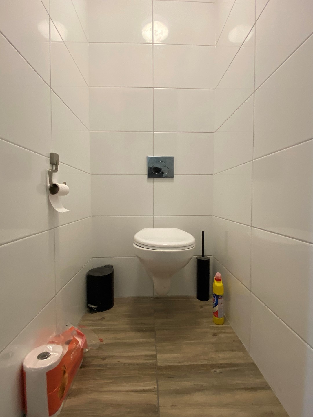 De badkamer is uitgerust met een douche en wastafel, en er is een apart toilet aanwezig. Tot slot beschikt het appartement over een balkon.