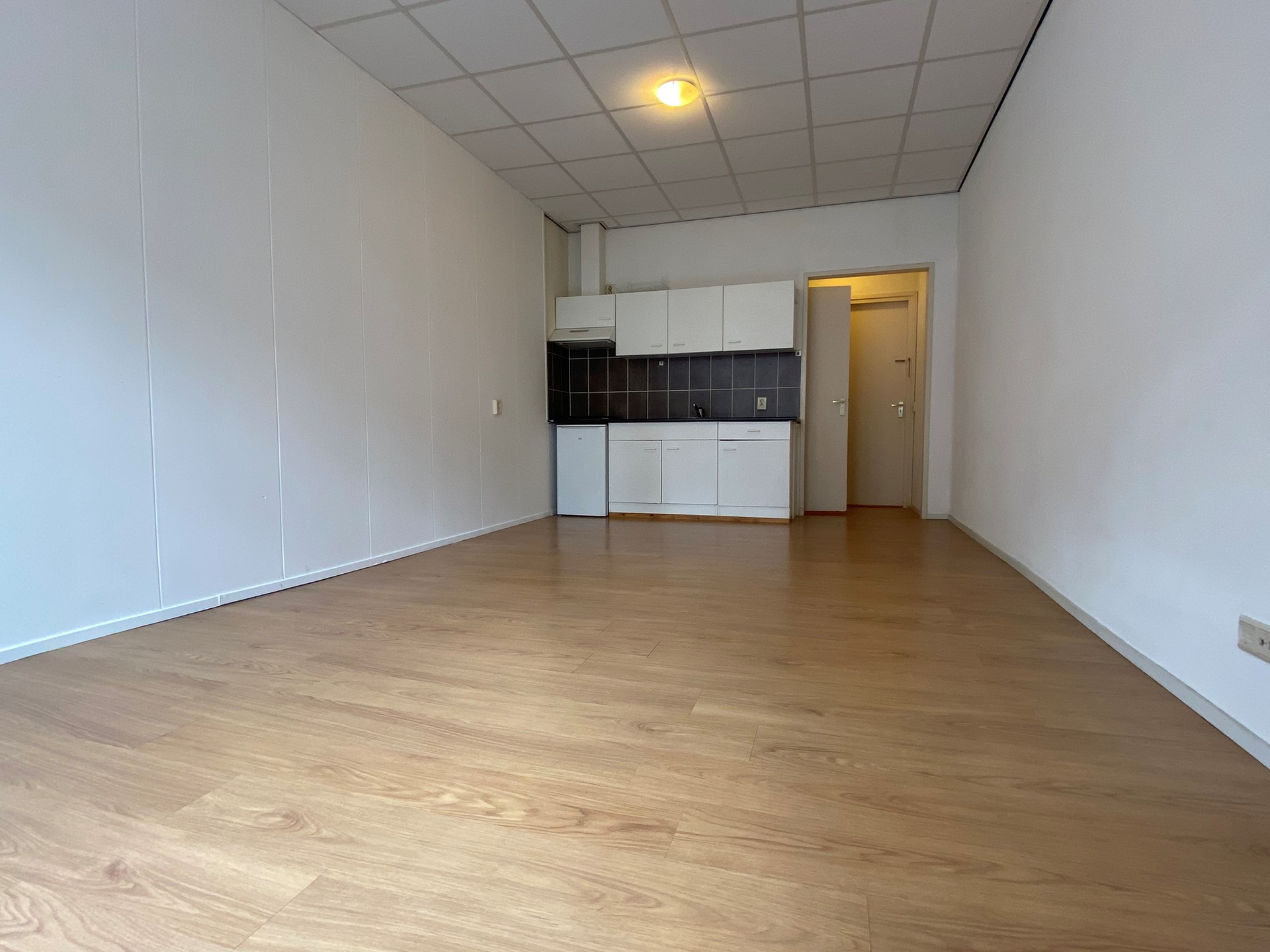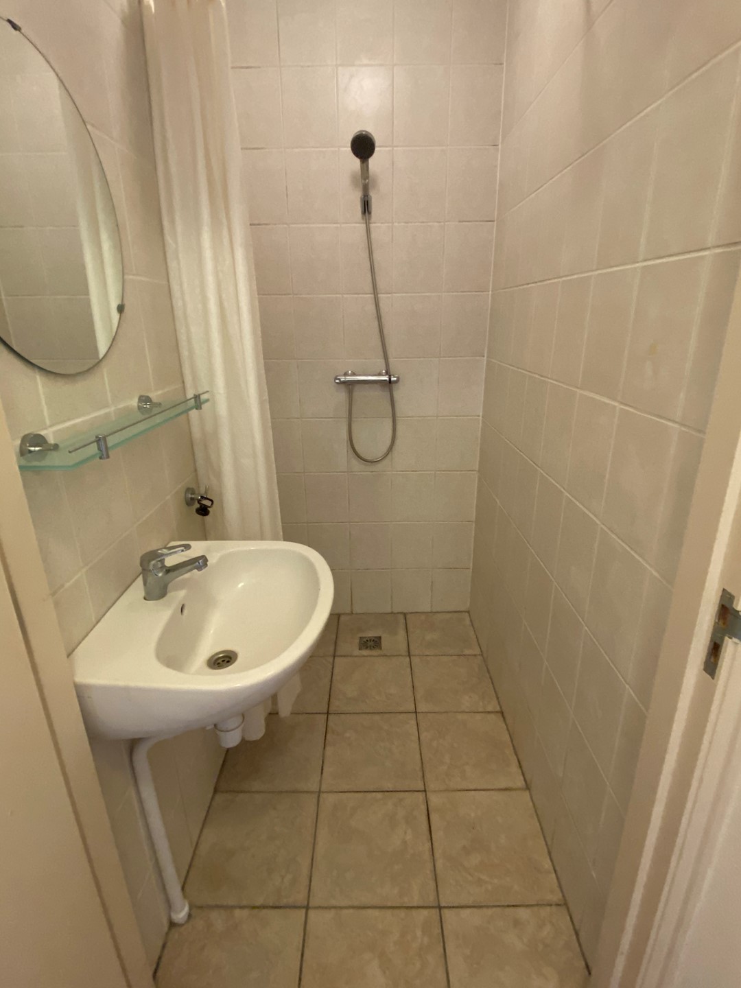 Deze kamer beschikt over een woon-/slaapkamer met een open keuken en een eigen badkamer. De keuken is uitgerust met een ingebouwde afzuigkap en een gaskookplaat. De badkamer is voorzien van een douche en een wastafel. Het toilet wordt gedeeld met twee andere bewoners.