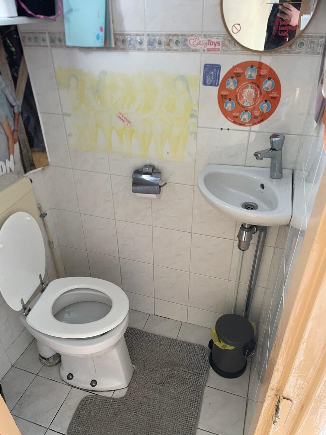 De gemeenschappelijke ruimtes worden gedeeld met vier vrouwelijke medebewoners. De badkamer bevindt zich eveneens op de eerste verdieping en is voorzien van een douche en wastafel. Het toilet is apart en bevindt zich op de begane grond.