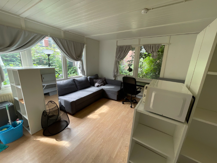 kamer 13 bevindt zich aan de achterzijde van het pand en heeft een oppervlakte van 16,46 m². De ruimte is uitgerust met een eigen keuken, voorzien van alle noodzakelijke gemakken, evenals een eigen douchecabine, zodat deze niet gedeeld hoeft te worden. Daarnaast is er een gemeenschappelijk toilet aanwezig dat je deelt met één medebewoner. Tot slot is er een ruime achtertuin waar je je fiets veilig kunt stallen.